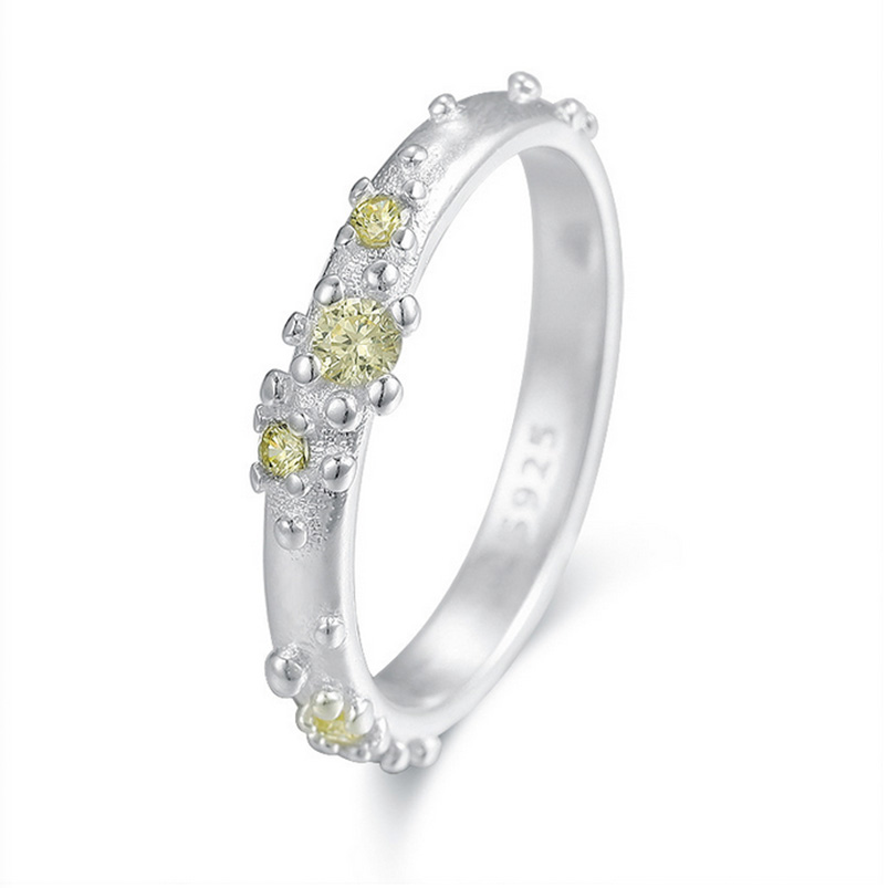 Les pierre jaune se glissent dans notre bague parmi les billes, en argent 925s plaqué platine, et lui confère un caractère lumineux et magique ! Serti des pierres jaune précieuses et originaux, cette touche de couleur printanière, la bague se révèle vibrante et singulière à la fois.